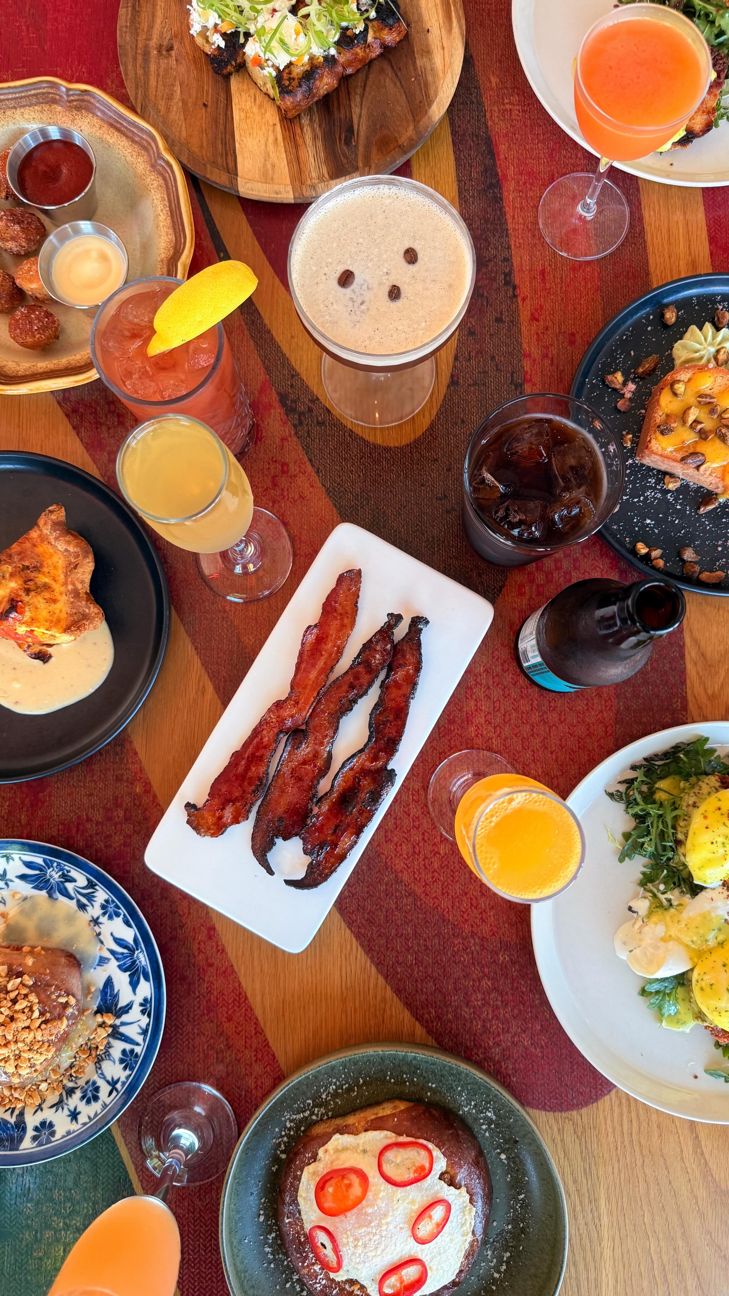 And now? Brunch cocktails are officially on the table. Mimosas, Bloody Marys, and rotating house creations to make Sunday feel like a celebration.
